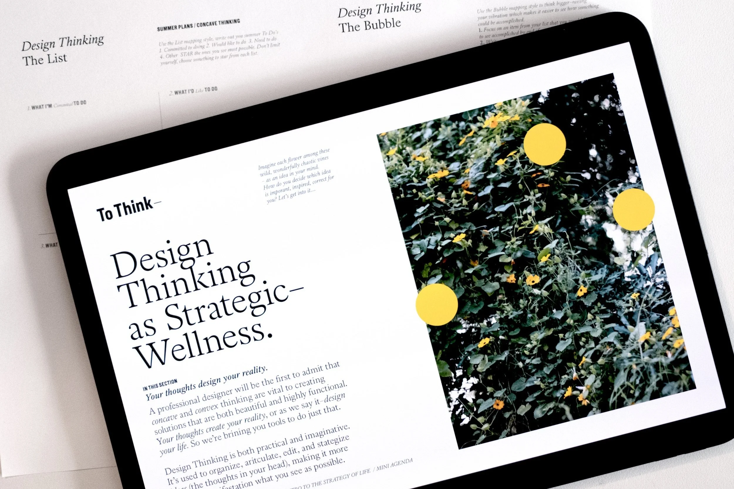A series of digital Design-Wellness editorial meets journaling Workbooks created as a case study to uplift and elevate the reader. Each supporting positive mental health in unique ways by encouraging perspective shifts, seasonal themes, strategic wellness strategies and creative confidence.